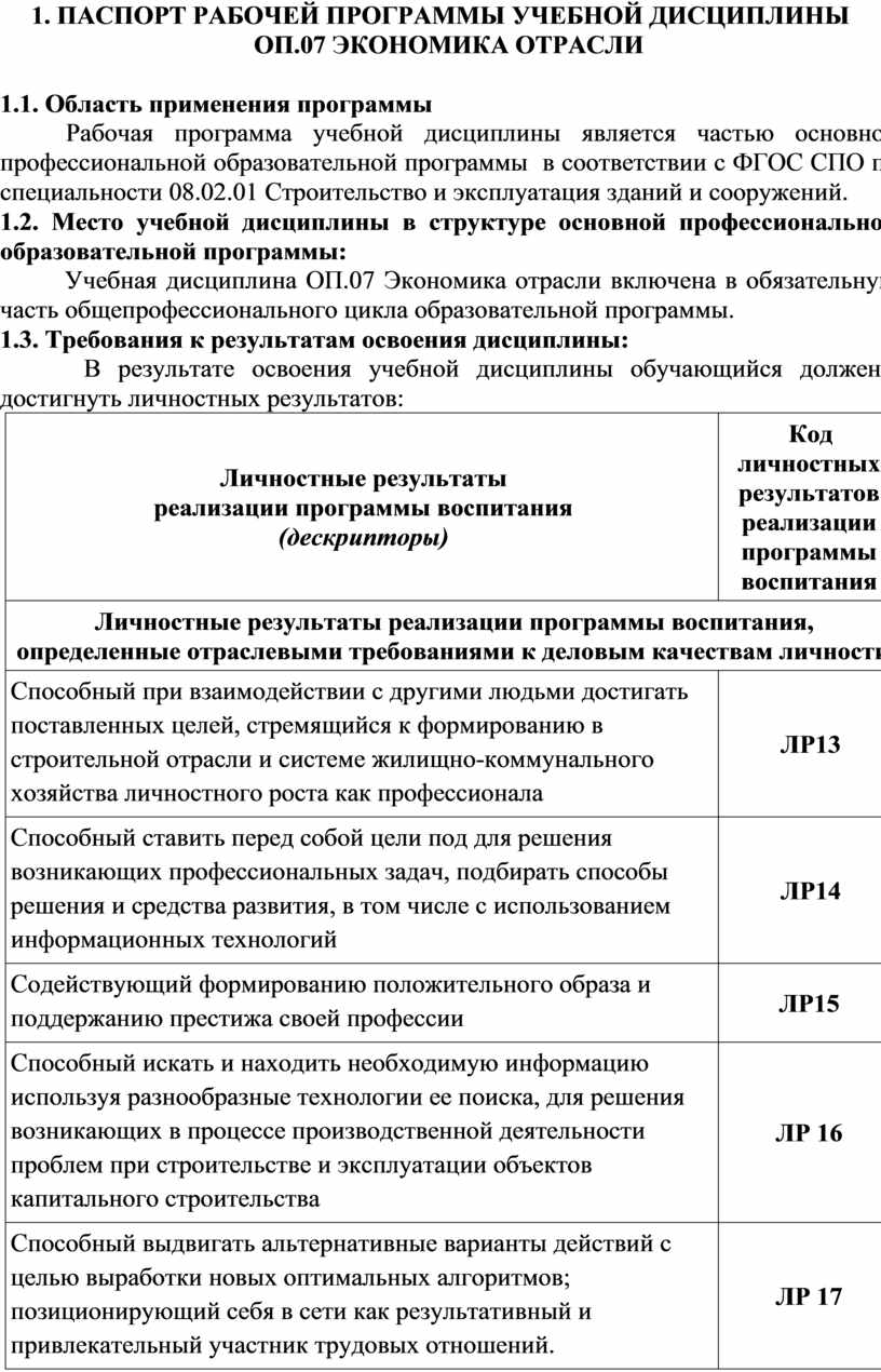 1. паспорт РАБОЧЕЙ ПРОГРАММЫ УЧЕБНОЙ ДИСЦИПЛИНЫ