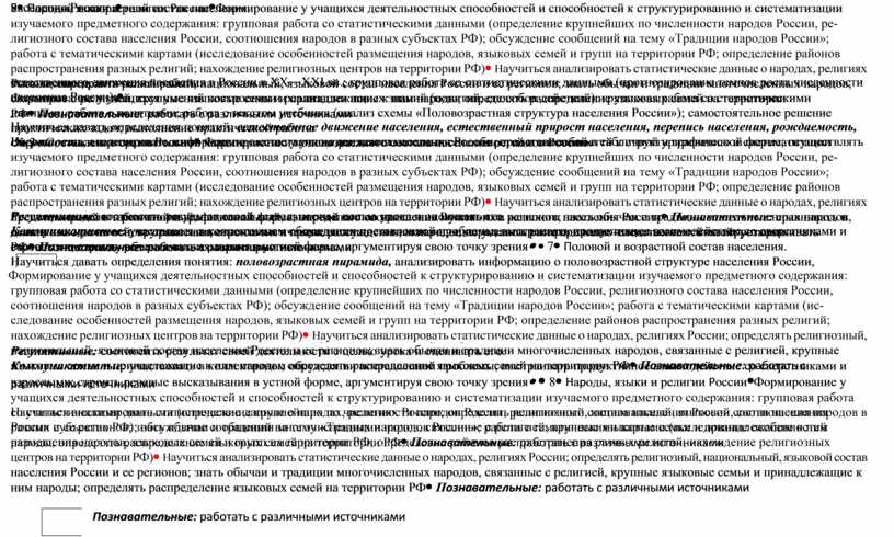 - формирование целостного представления об особенностях населения, хозяйства России, о месте нашей страны в современном мире;