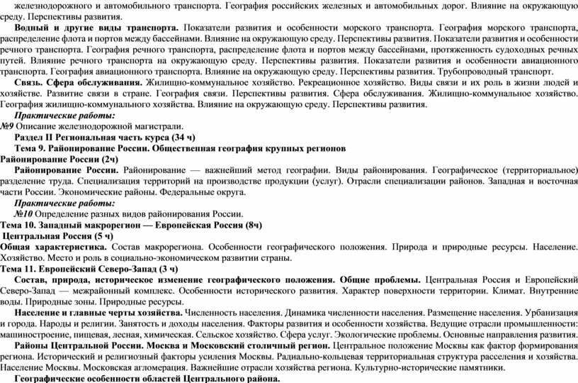 Изложенный в программе материал соответствует разделам стандарта основного общего образования по географии и состоит из следующих разделов: «Общая характеристика населения и хозяйства России», «Характеристика географических районов России»