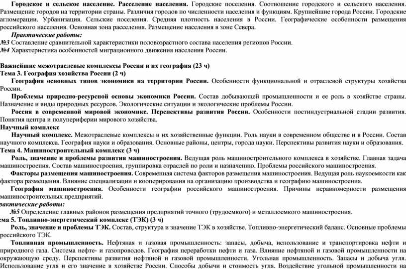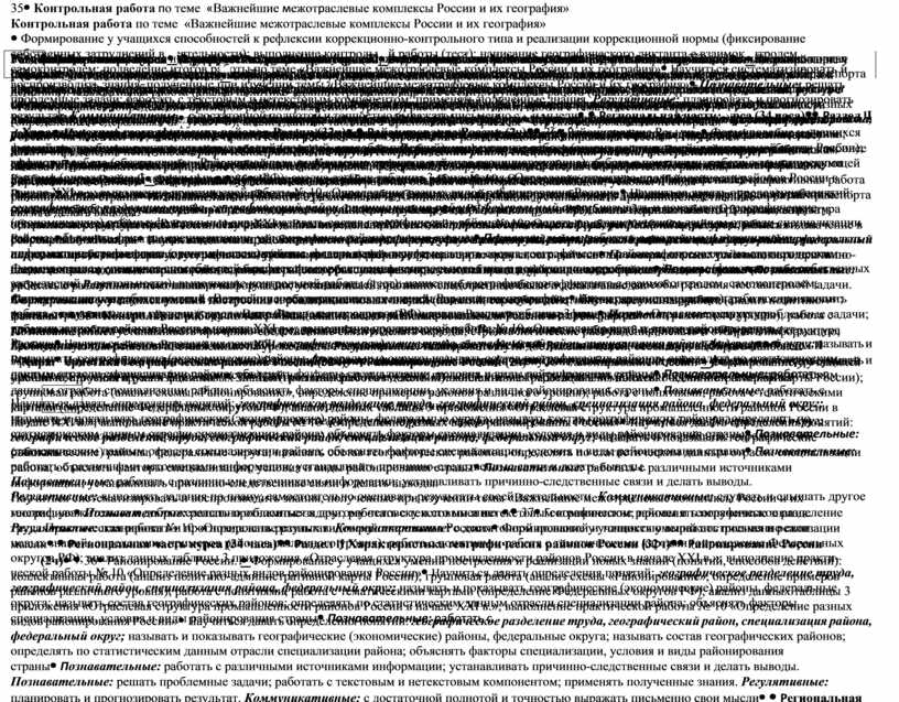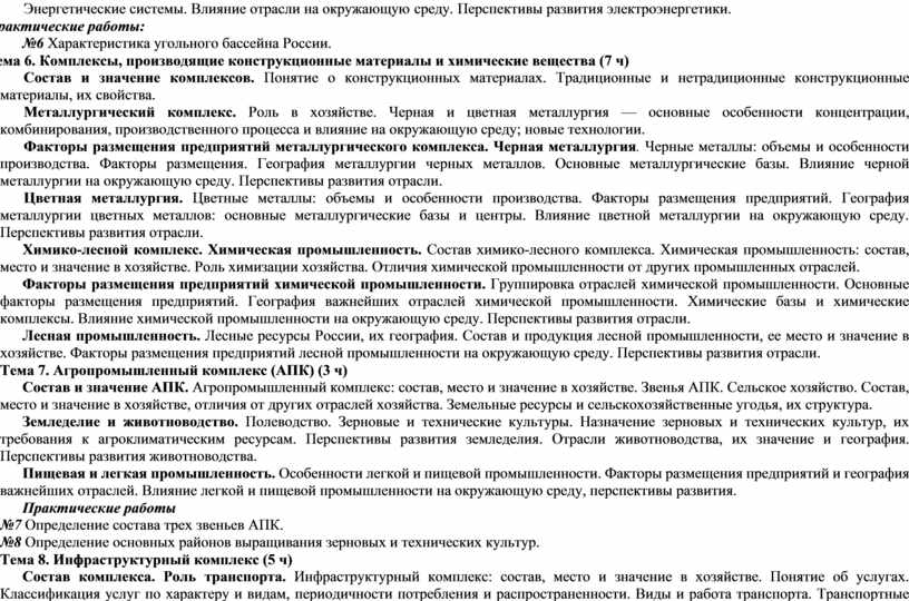 Важнейшие межотраслевые комплексы России и их география |
