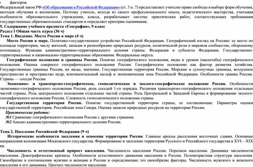 Изучение данного курса определяет его особую роль: помимо раскрытия основных знаний, формирования географических умений и навыков, он влияет на мировоззрение обучающихся, имеет огромное воспитательное значение.