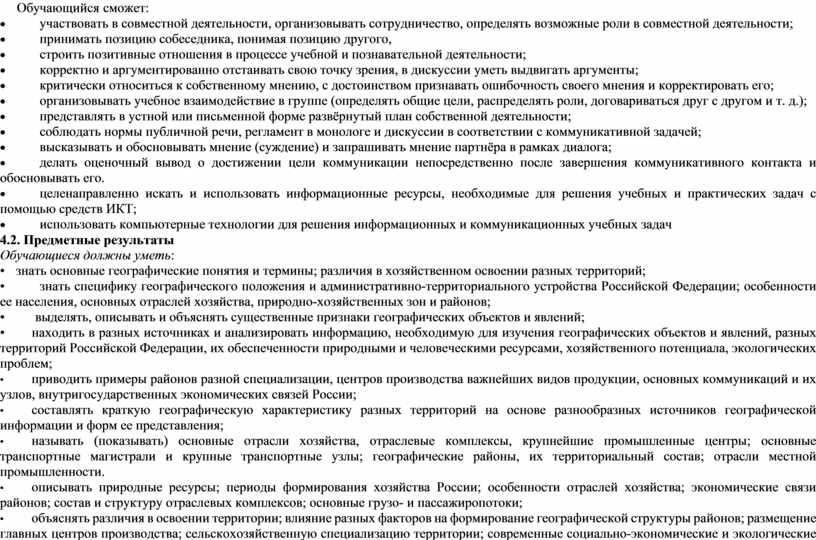 4. Требования к результатам обучения и освоения содержания учебного предмета «География», 9 класс