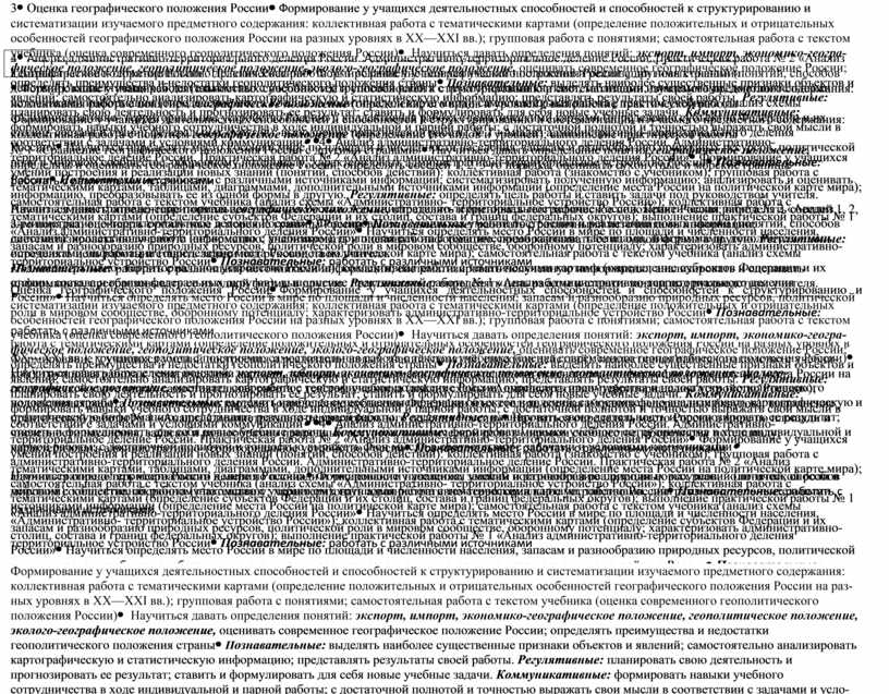 - формирование географического образа своей страны, представления о России как целостном географическом регионе и одновременно как о субъекте глобального географического пространства;