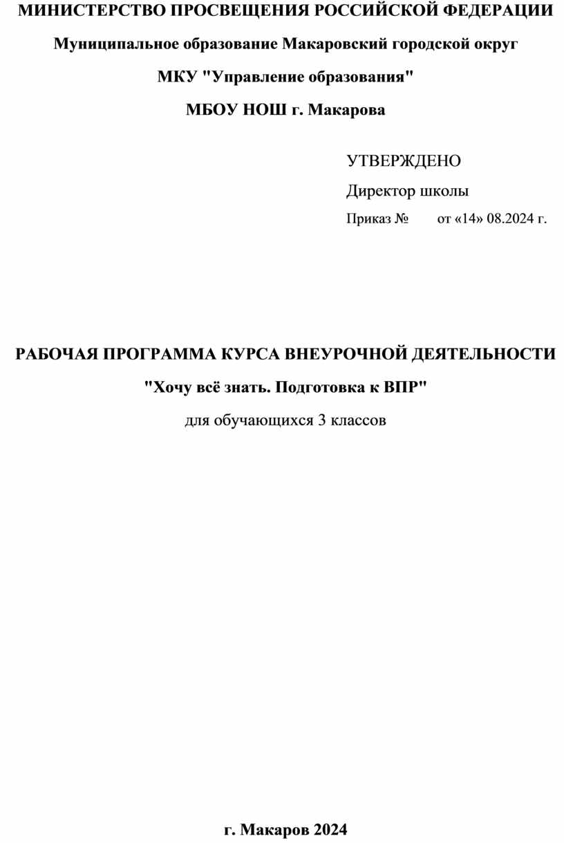 УТВЕРЖДЕНО Директор школы Приказ № от «14» 08.2024 г.