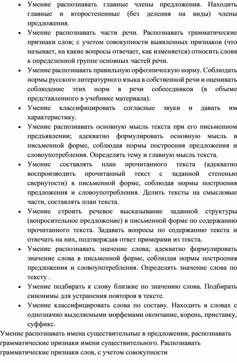 · Умение распознавать части речи. Распознавать грамматические признаки слов; с учетом совокупности выявленных признаков (что называет, на какие вопросы отвечает, как изменяется) относить слова к определенной группе основных частей речи.