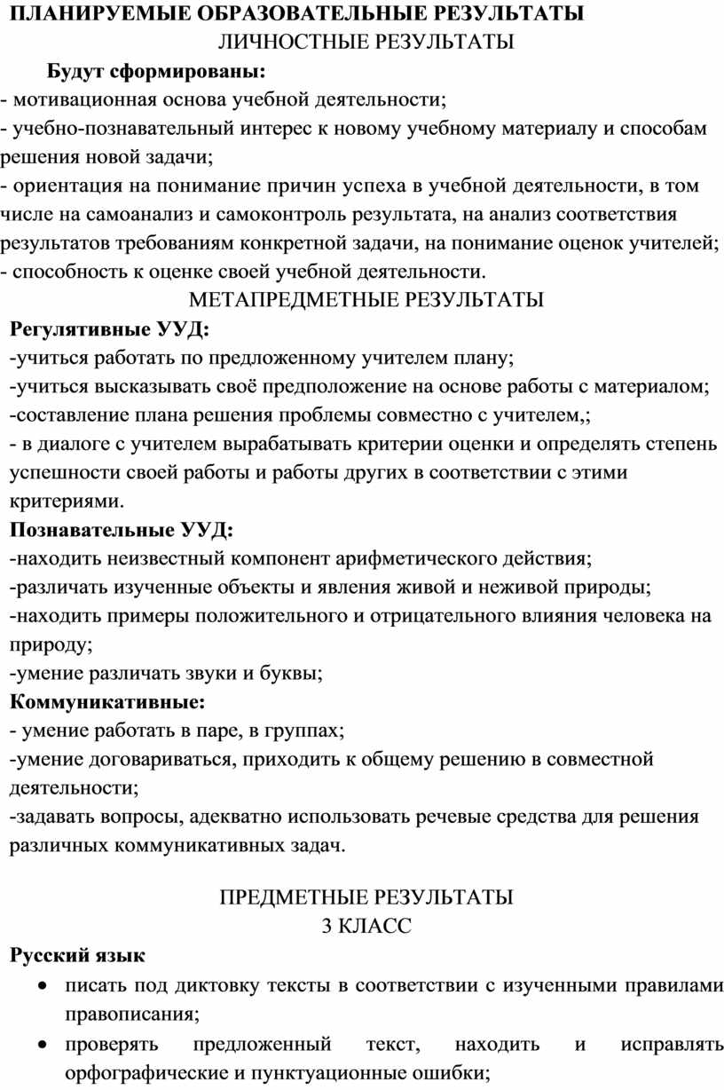 ПЛАНИРУЕМЫЕ ОБРАЗОВАТЕЛЬНЫЕ РЕЗУЛЬТАТЫ
