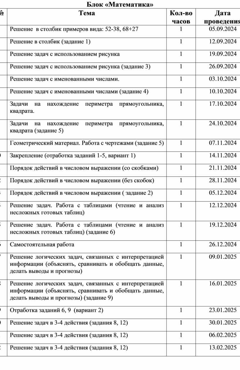 Решение задач. Работа с таблицами (чтение и анализ несложных готовых таблиц) |
