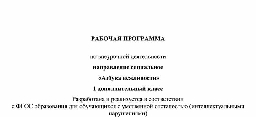 В соответствии с федеральным государственным образовательным стандартом, организация знаний по направлениям внеурочной деятельности, является неотъемлемой частью образовательного процесса в школе. Одним из направлений внеурочной деятельности является социальное направление. В рамках данного направления разработана программа по курсу «Азбука вежливости», направлена на реализацию духовно - нравственного обучения и воспитания учащихся специальных коррекционных школ, через систему классных часов. Адаптация и ориентация детей с ограниченными возможностями здоровья существенно затруднена в силу ограничений, наложенных дефектом – нарушением познавательной деятельности. В отличие от детей в норме, дети с ОВЗ не в состоянии самостоятельно освоить нормы поведения в обществе. Личность такого ребенка сформируется только при условии целенаправленного обучения и воспитания. Педагогическая целесообразность программы внеурочной деятельности «Азбука вежливости» обусловлена необходимостью помочь особому ребенку адаптироваться в современном обществе, сформировать ценностные и нравственные ориентиры.