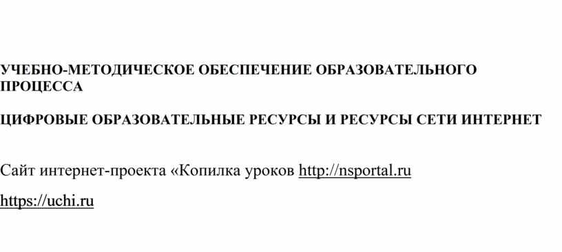 УЧЕБНО-МЕТОДИЧЕСКОЕ ОБЕСПЕЧЕНИЕ ОБРАЗОВАТЕЛЬНОГО ПРОЦЕССА