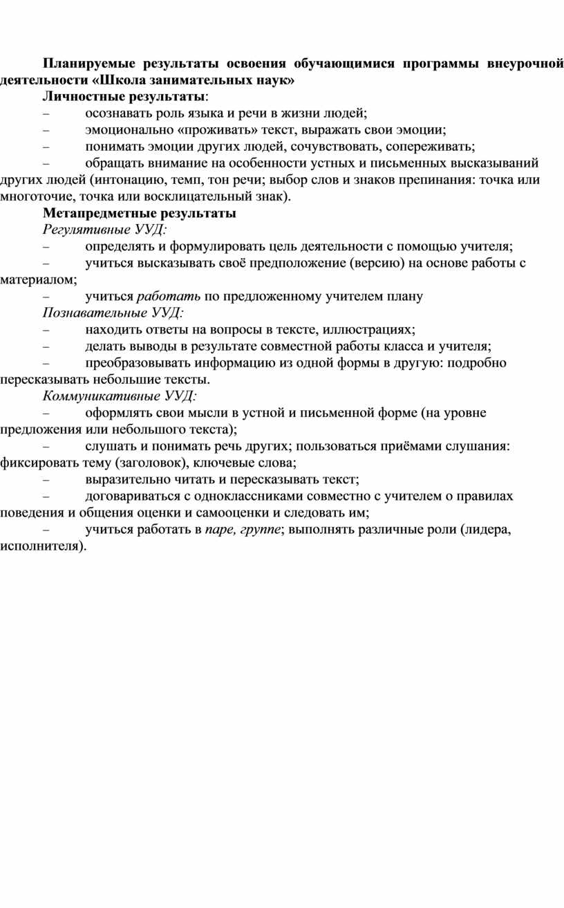 Программа данного курса позволяет показать учащимся, как увлекателен, разнообразен, неисчерпаем мир слова, мир русской грамоты. Это имеет большое значение для формирования подлинных познавательных интересов как основы учебной деятельности. В процессе изучения грамматики школьники могут увидеть “волшебство знакомых слов”; понять, что обычные слова достойны изучения и внимания. Воспитание интереса к «Школе занимательных наук» должно пробуждать у учащихся стремление расширять свои знания по русскому языку, совершенствовать свою речь.