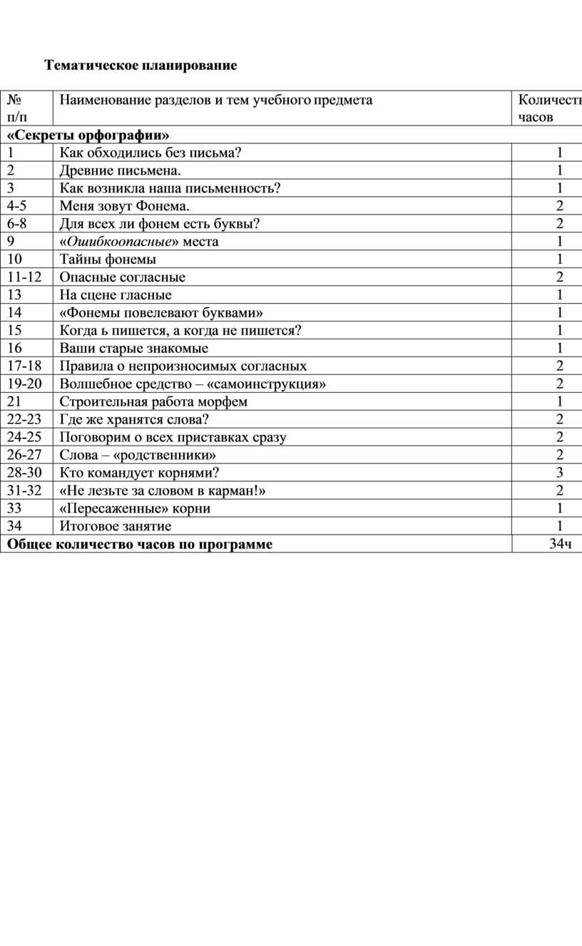 2 блок предназначен для реализации в 2ых классах начальной школы: «Секреты орфографии» (34 ч.)