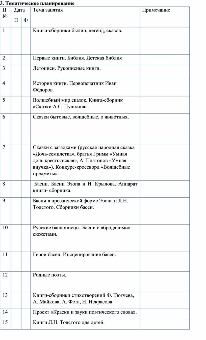 3. Тематическое планирование