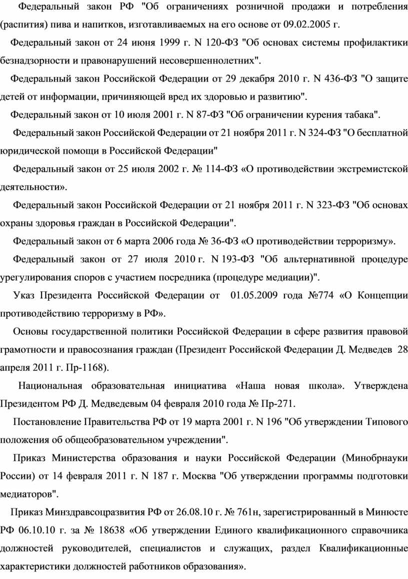 Приказ Министерства образования и науки Российской Федерации (Минобрнауки России) от 14 февраля 2011 г. N 187 г. Москва "Об утверждении программы подготовки медиаторов".