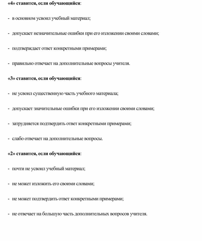 При оценивании ответа школьника на теоретические вопросы учителем используются следующие критерии: