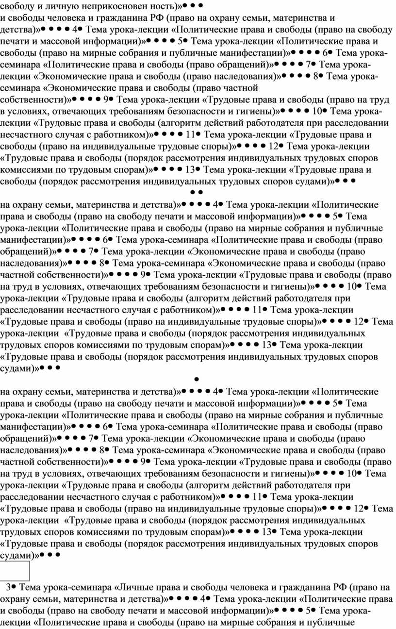 Трудовые права и свободы человека и гражданина |