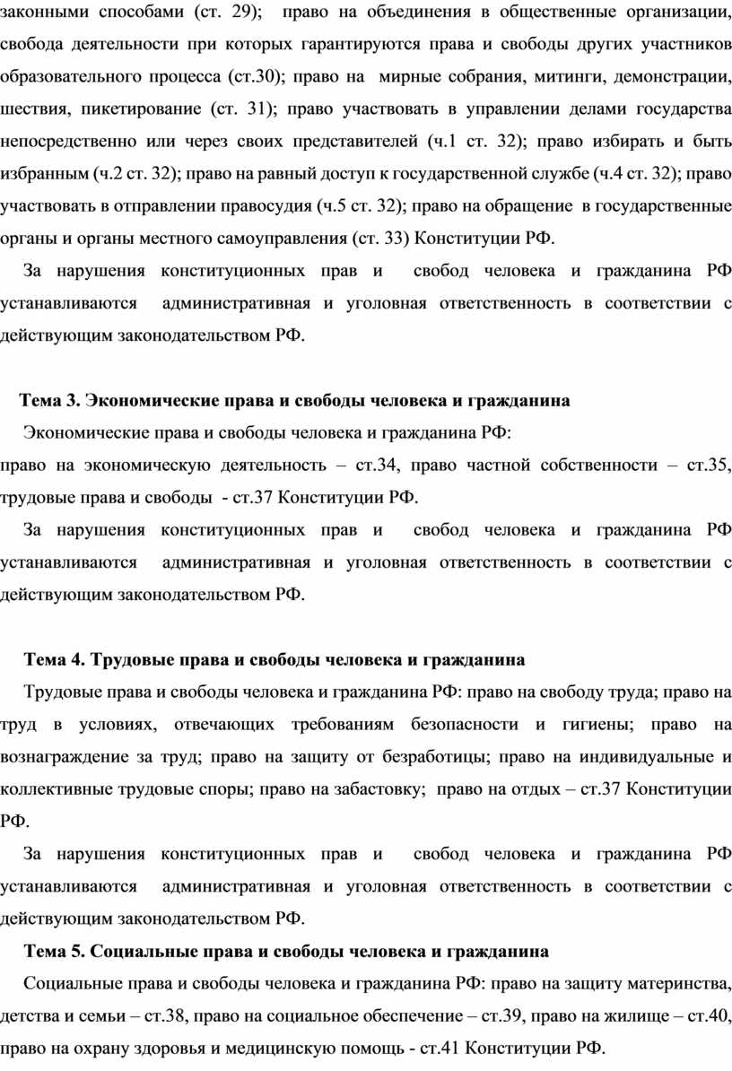 Экономические права и свободы человека и гражданина |