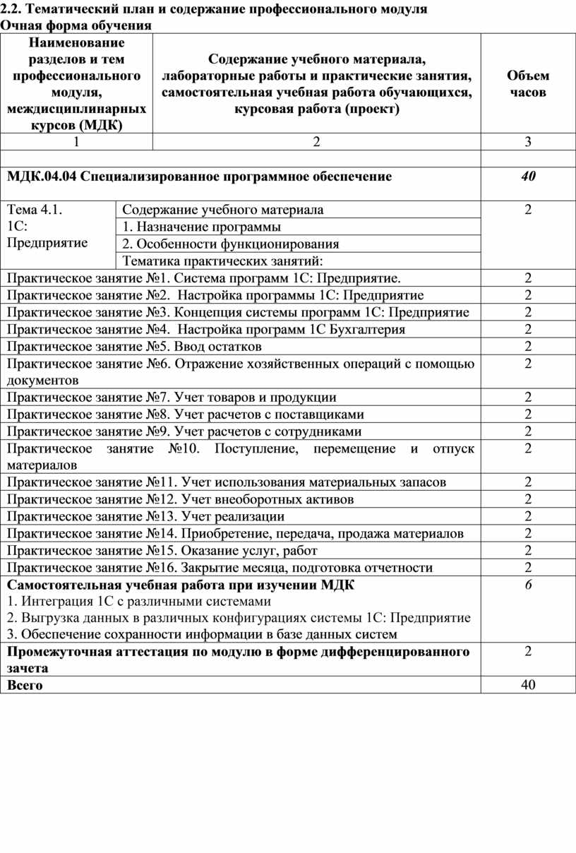 2.2. Тематический план и содержание профессионального модуля