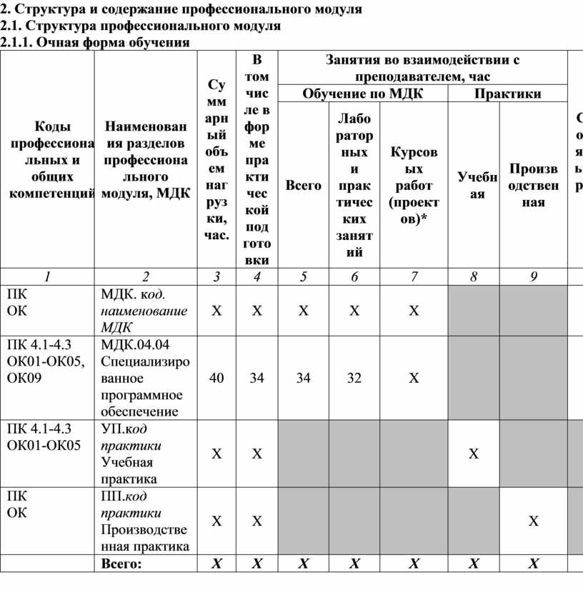 2.1. Структура профессионального модуля