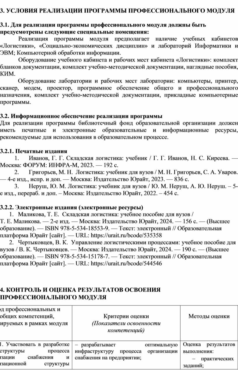 3. УСЛОВИЯ РЕАЛИЗАЦИИ ПРОГРАММЫ ПРОФЕССИОНАЛЬНОГО МОДУЛЯ