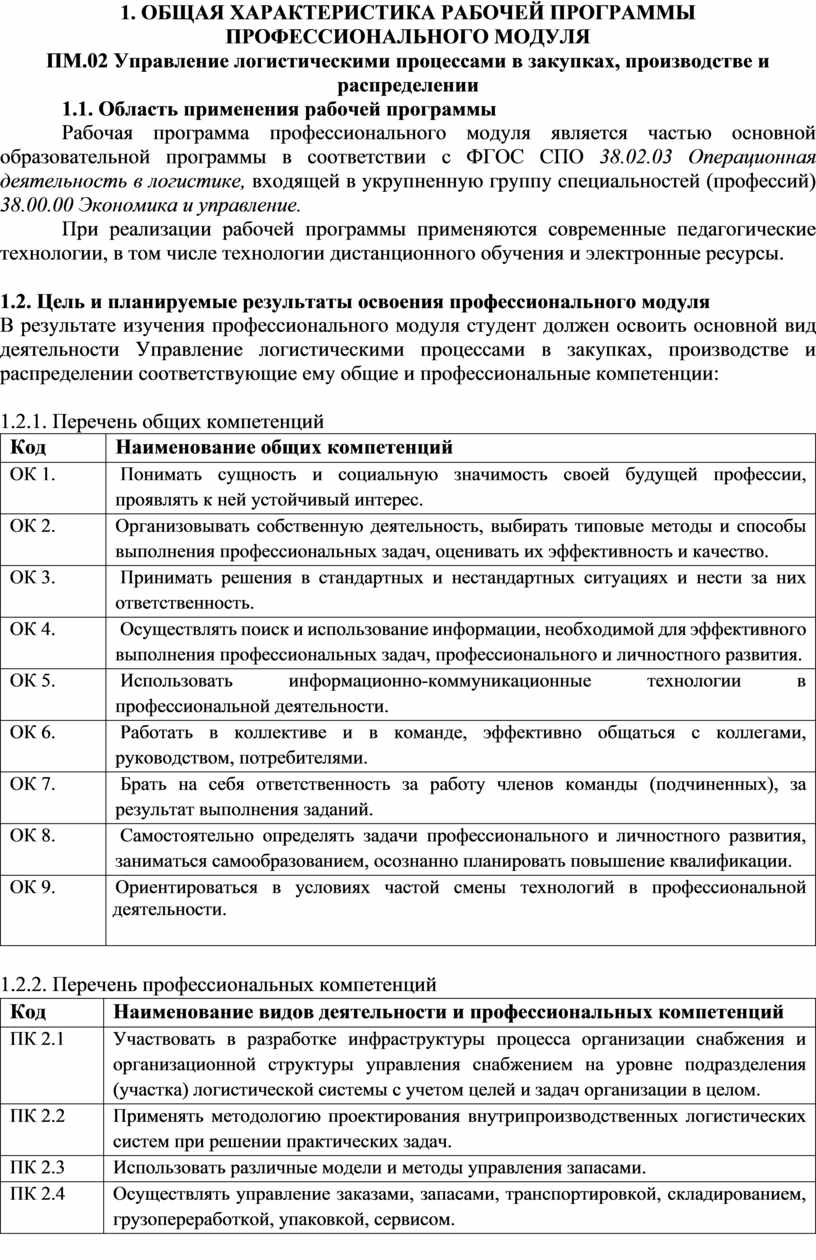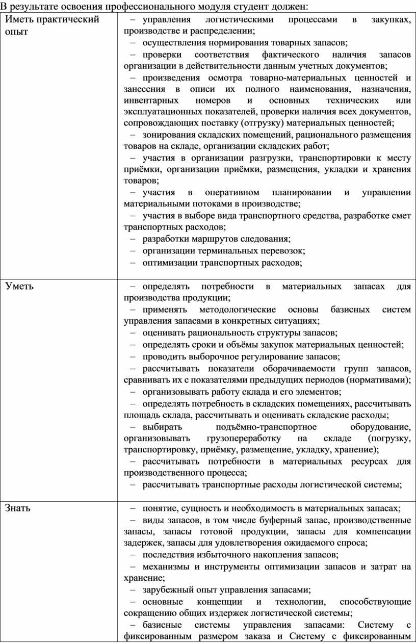 В результате изучения профессионального модуля студент должен освоить основной вид деятельности Управление логистическими процессами в закупках, производстве и распределении соответствующие ему общие и профессиональные компетенции: