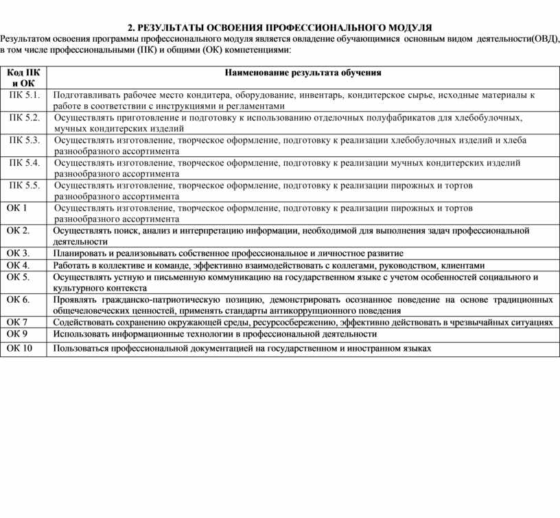 Результатом освоения программы профессионального модуля является овладение обучающимися основным видом деятельности(ОВД), в том числе профессиональными (ПК) и общими (ОК) компетенциями: