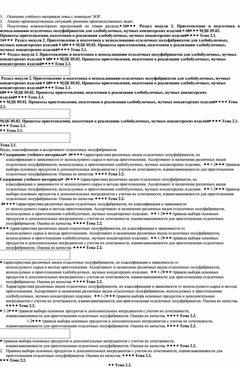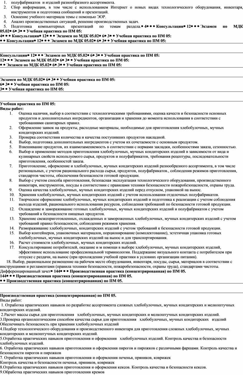 ПМ 05 Приготовление, оформление и подготовка к реализации хлебобулочных, мучных кондитерских изделий разнообразного ассортимента