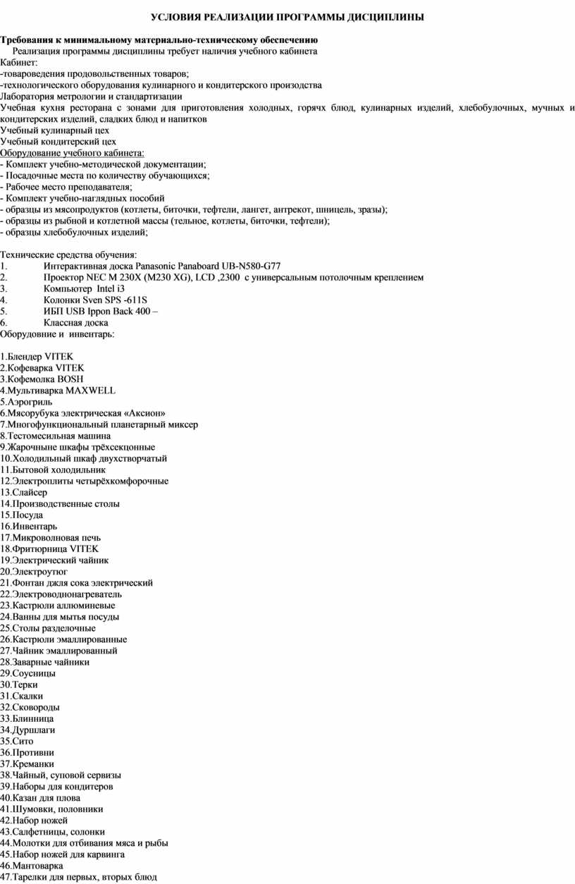 -виды, назначение, правила безопасной эксплуатации технологического оборудования, производственного инвентаря, инструментов, весоизмерительных приборов, посуды и правила ухода за ними;