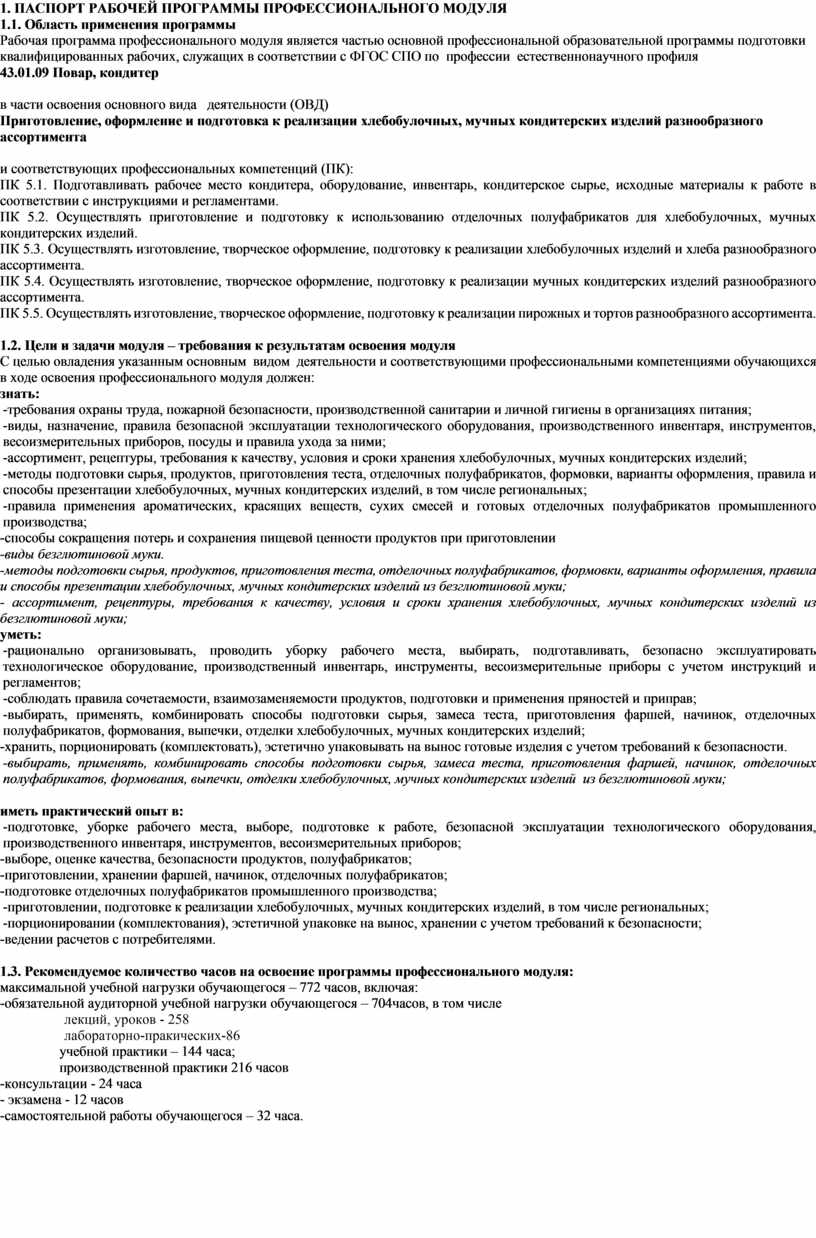 1. ПАСПОРТ РАБОЧЕЙ ПРОГРАММЫ ПРОФЕССИОНАЛЬНОГО МОДУЛЯ