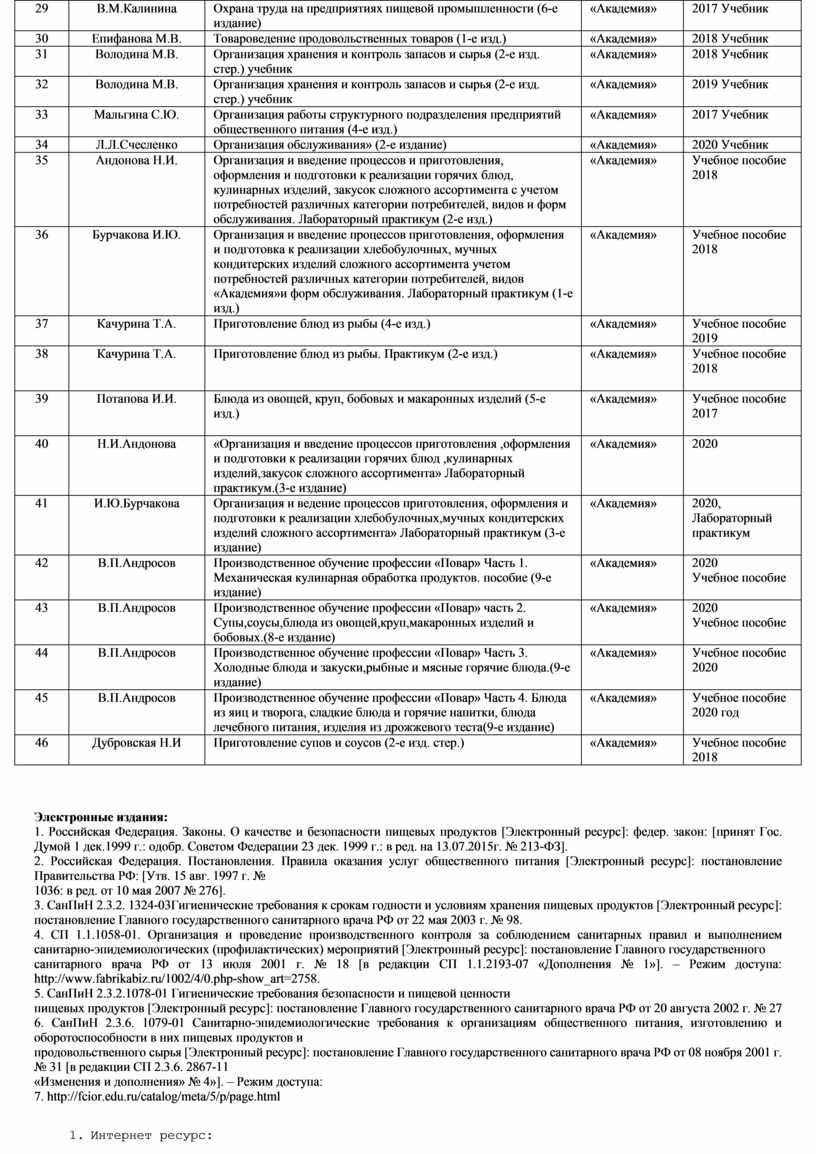 1. Российская Федерация. Законы. О качестве и безопасности пищевых продуктов [Электронный ресурс]: федер. закон: [принят Гос. Думой 1 дек.1999 г.: одобр. Советом Федерации 23 дек. 1999 г.: в ред. на 13.07.2015г. № 213-ФЗ].