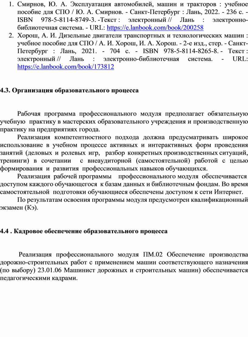 ПМ.02 ОБЕСПЕЧЕНИЕ ПРОИЗВОДСТВА ДОРОЖНО-СТРОИТЕЛЬНЫХ РАБОТ С ПРИМЕНЕНИЕМ МАШИН СООТВЕТСТВУЮЩЕГО НАЗНАЧЕНИЯ (ПО ВЫБОРУ)