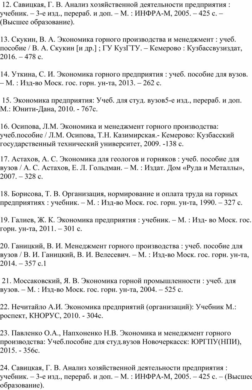 12. Савицкая, Г. В. Анализ хозяйственной деятельности предприятия : учебник. – 3-е изд., перераб. и доп. – М. : ИНФРА-М, 2005. – 425 с. – (Высшее образование).