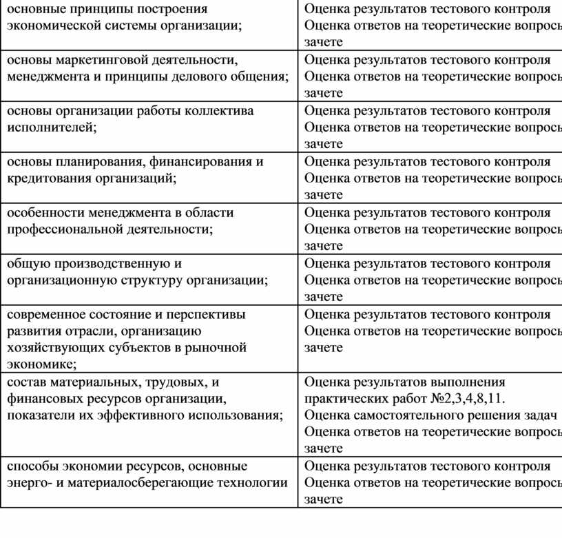 Оценка результатов выполнения практических работ №2,3,4,5,9,10,11,12,13,14,15 Оценка самостоятельного решения задач Оценка ответов на теоретические вопросы на зачете |