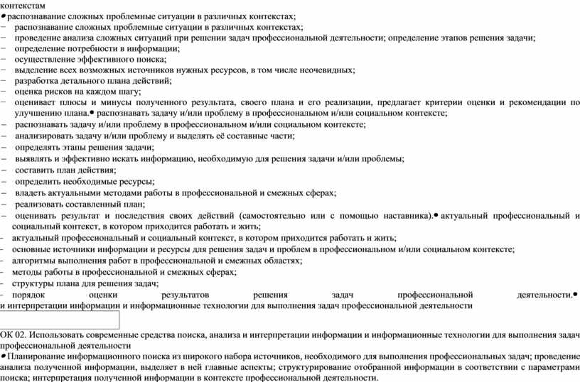 Выбирать способы решения задач профессиональной деятельности, применительно к различным контекстам. |