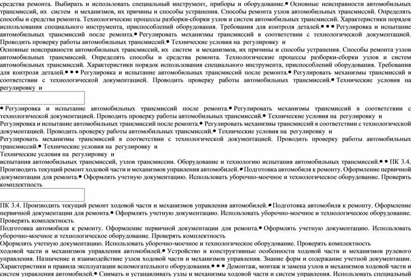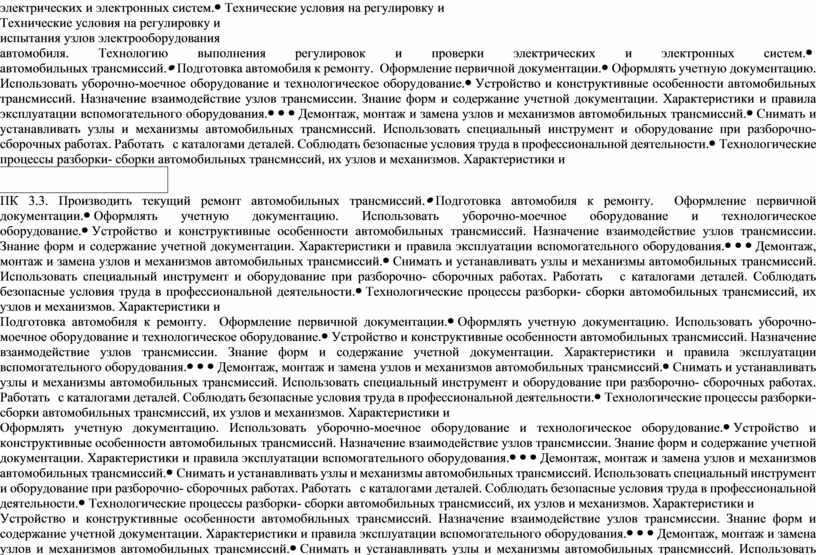 ПМ.03 Текущий ремонт различных типов автомобилей в соответствии с требованиями технологической документации