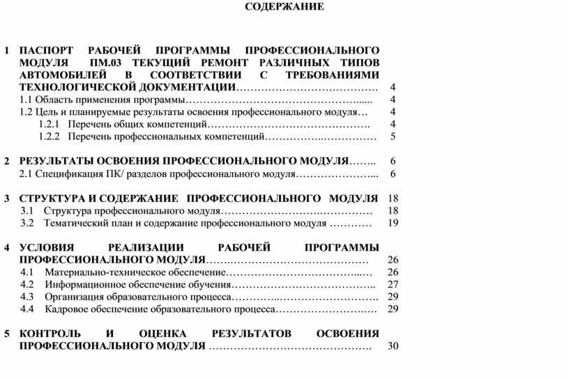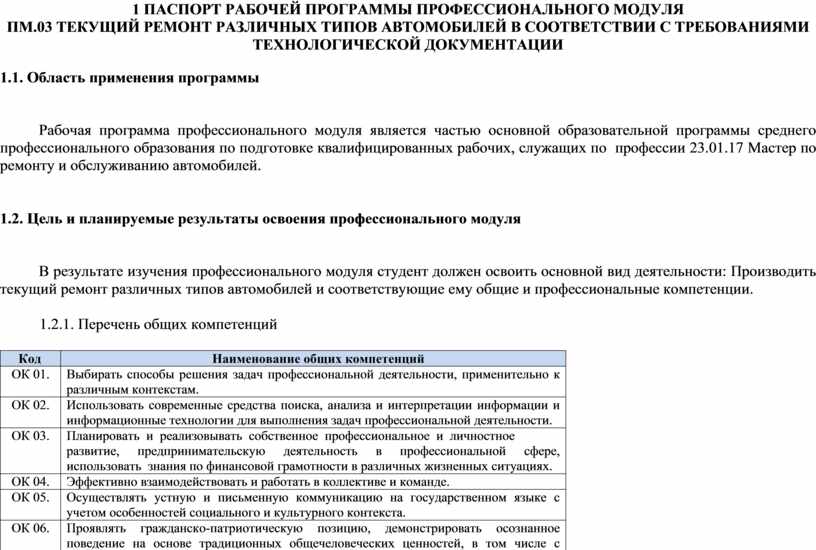 ПАСПОРТ РАБОЧЕЙ ПРОГРАММЫ ПРОФЕССИОНАЛЬНОГО МОДУЛЯ ПМ.03 ТЕКУЩИЙ РЕМОНТ РАЗЛИЧНЫХ ТИПОВ АВТОМОБИЛЕЙ В СООТВЕТСТВИИ С ТРЕБОВАНИЯМИ ТЕХНОЛОГИЧЕСКОЙ ДОКУМЕНТАЦИИ…………………………………. |