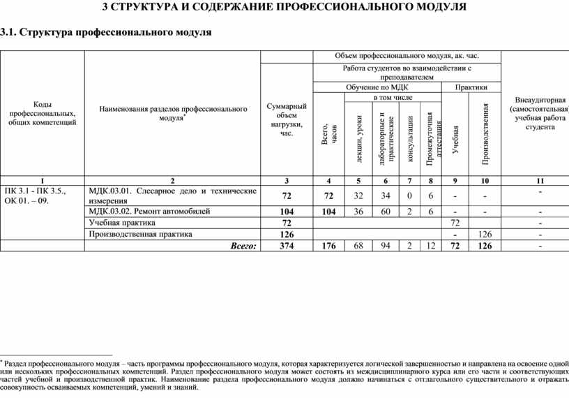 СТРУКТУРА и содержание ПРОФЕССИОНАЛЬНОГО МОДУЛЯ |