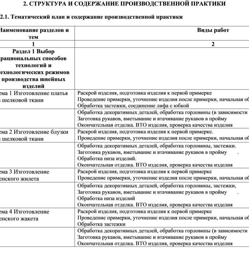 2. СТРУКТУРА И СОДЕРЖАНИЕ ПРОИЗВОДСТВЕННОЙ практики