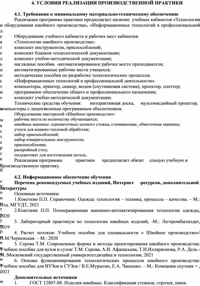 4. УСЛОВИЯ РЕАЛИЗАЦИИ ПРОИЗВОДСТВЕННОЙ ПРАКТИКИ