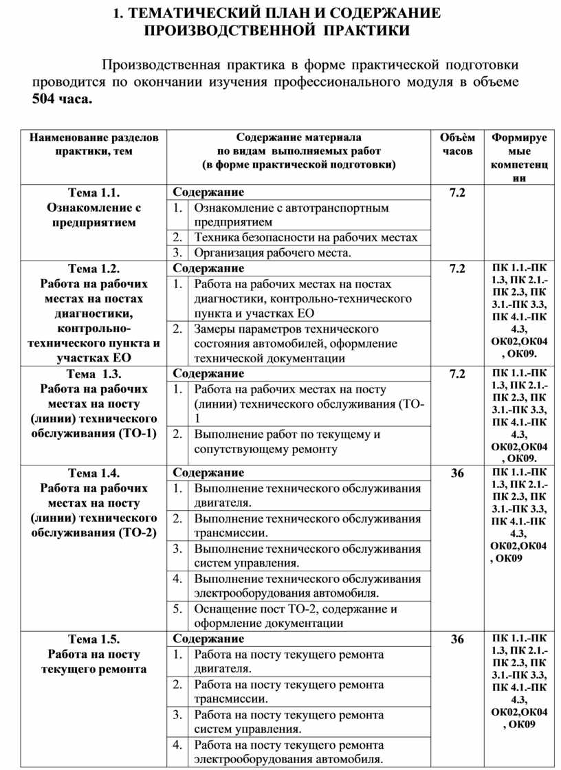 автомобильных двигателей; 2. Техническое обслуживание и ремонт электрооборудования и электронных систем автомобилей; 3. Техническое обслуживание и ремонт шасси автомобилей; 4. Проведение кузовного ремонта, формирование соответствующих профессиональных компетенций (ПК) в ходе освоения профессионального модуля ПМ 01. Техническое обслуживание и ремонт автотранспортных средств: