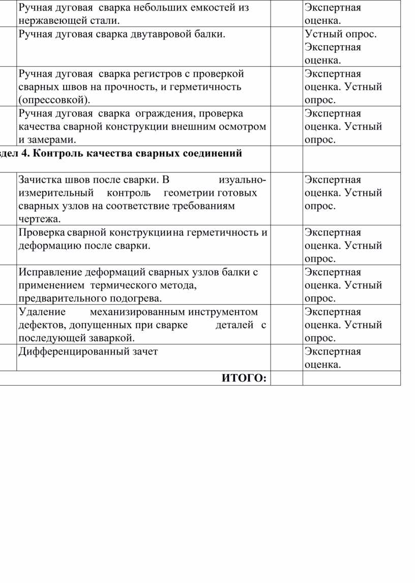 ПК 1. 6. Проводить контроль подготовки и сборки элементов конструкции под сварку. |