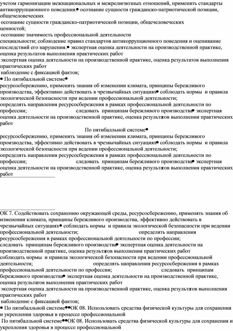 ОК 7. Содействовать сохранению окружающей среды, ресурсосбережению, применять знания об изменении климата, принципы бережливого производства, эффективно действовать в чрезвычайных ситуациях |