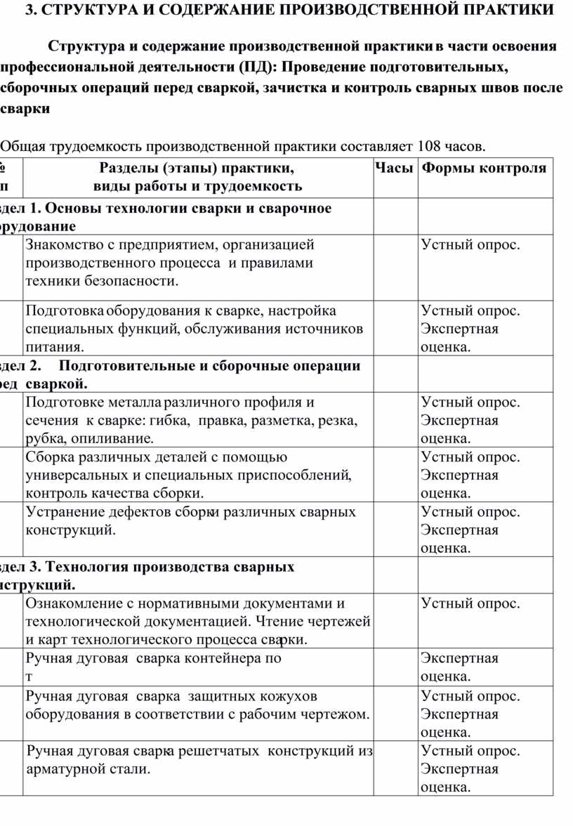 3. СТРУКТУРА И СОДЕРЖАНИЕ ПРОИЗВОДСТВЕННОЙ ПРАКТИКИ