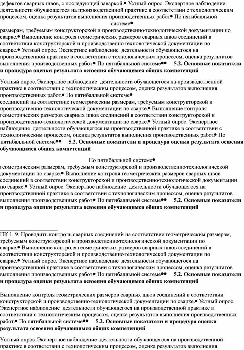 ПК 1. 9. Проводить контроль сварных соединений на соответствие геометрическим размерам, требуемым конструкторской и производственно-технологической документации по сварке. |