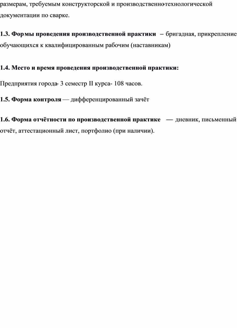 1.3. Формы проведения производственной практики – бригадная, прикрепление обучающихся к квалифицированным рабочим (наставникам).