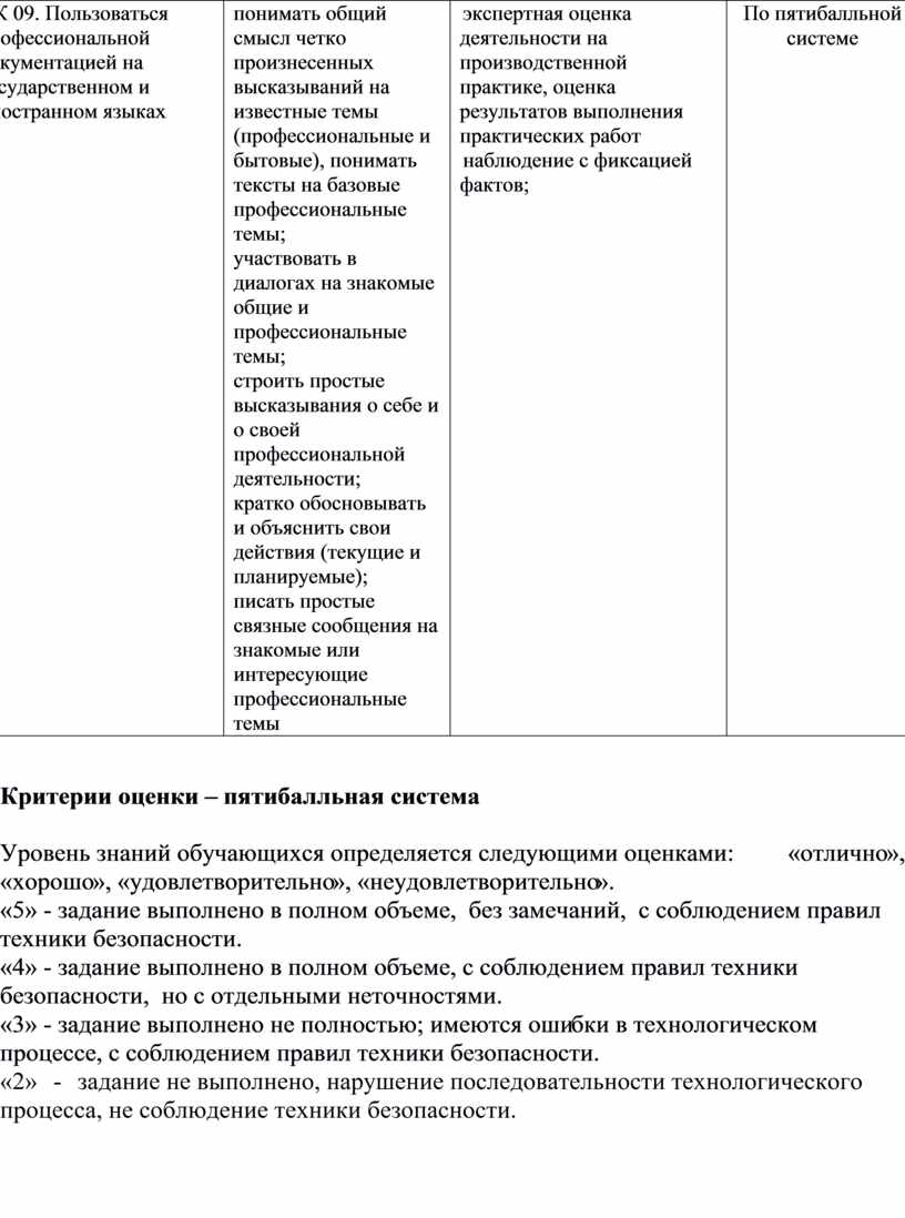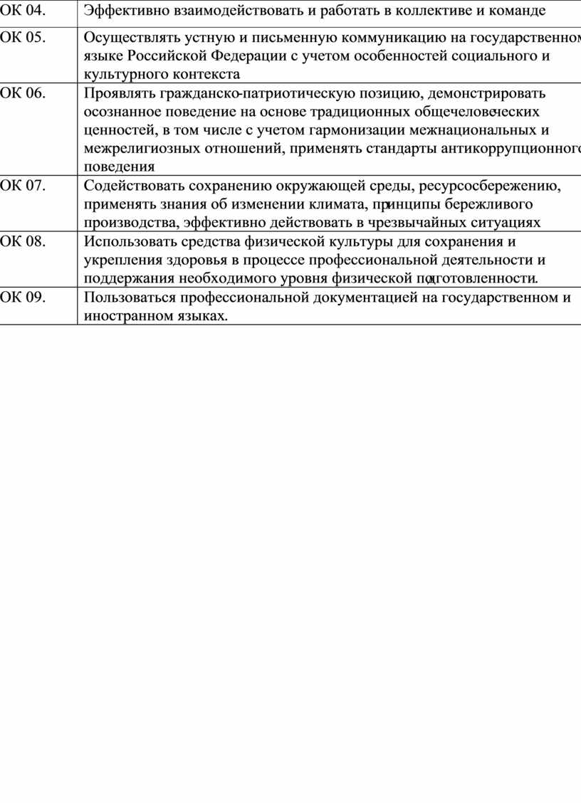 ОК 09. Пользоваться профессиональной документацией на государственном и иностранном языках |