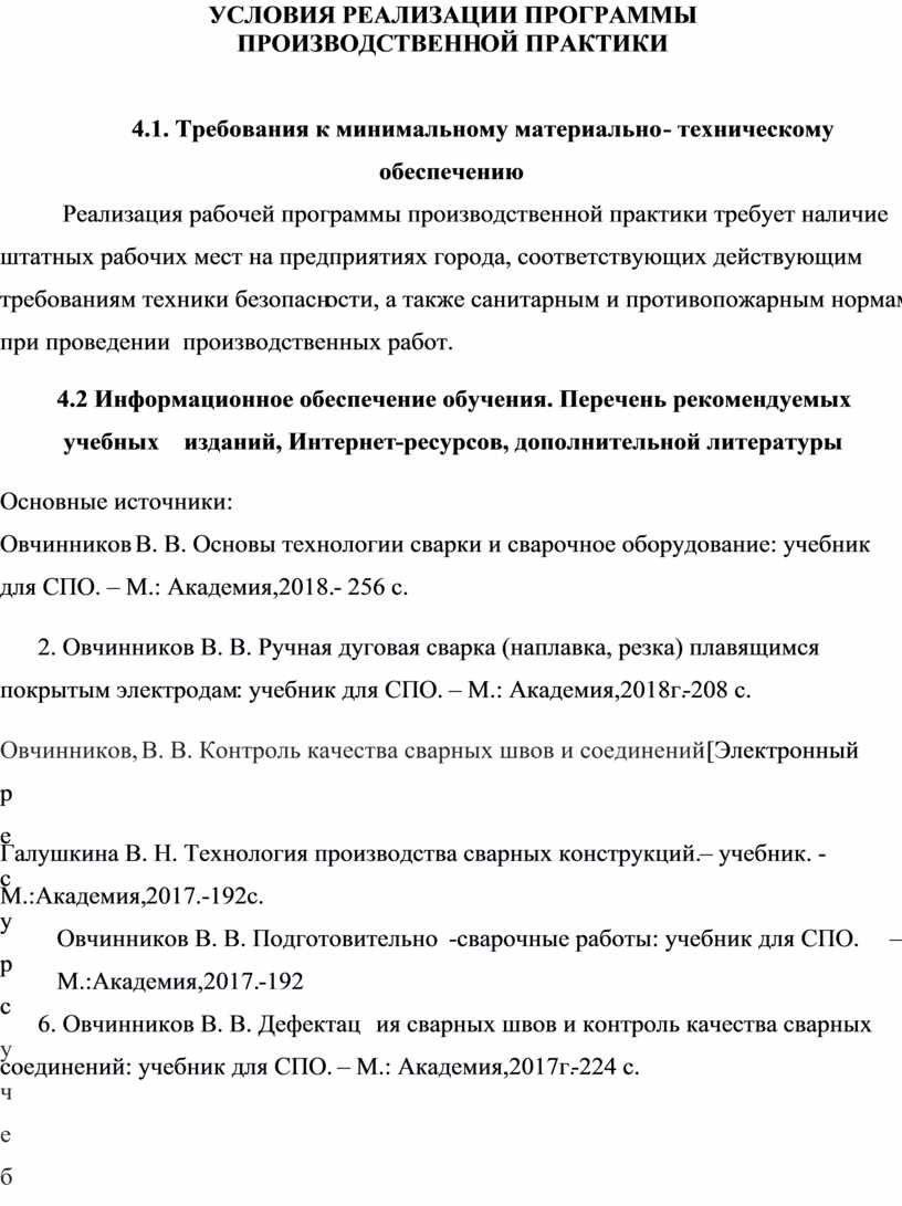 5. Овчинников В. В. Подготовительно-сварочные работы: учебник для СПО. –М.:Академия,2017.-192