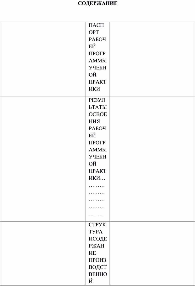 СТРУКТУРА ИСОДЕРЖАНИЕ ПРОИЗВОДСТВЕННОЙ ПРАКТИКИ………………………………………………………. |