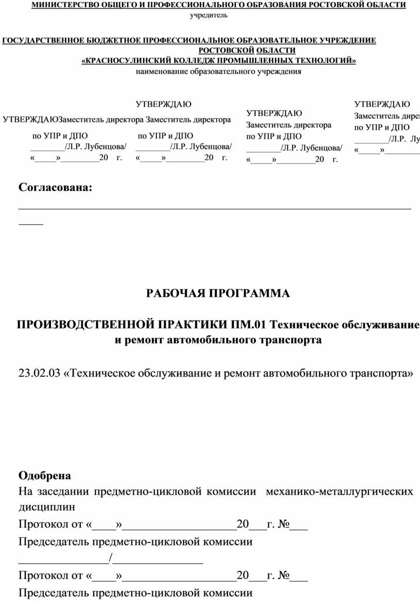 УТВЕРЖДАЮ Заместитель директора по УПР и ДПО ________/Л.Р. Лубенцова/ «_____»_________20 г.