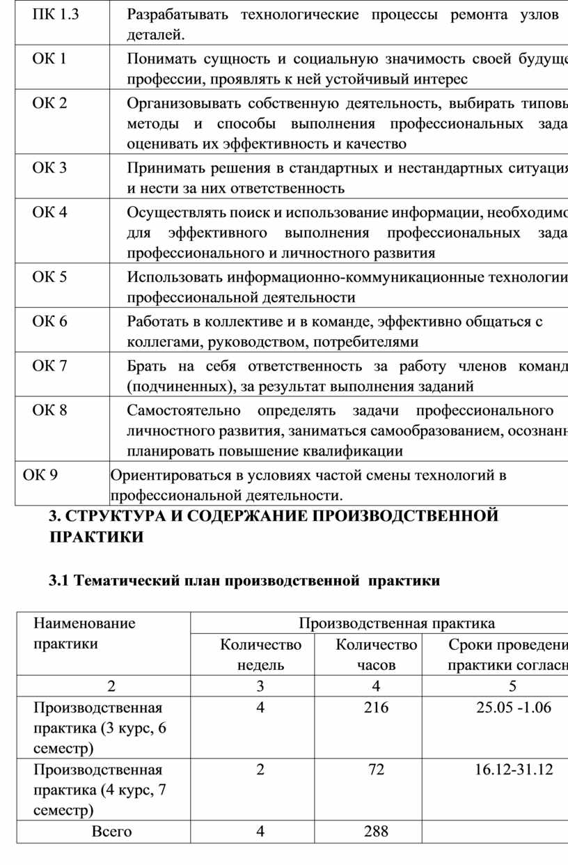 Производственная практика направлена на формирование у обучающегося общих и профессиональных компетенций, приобретение практического опыта.