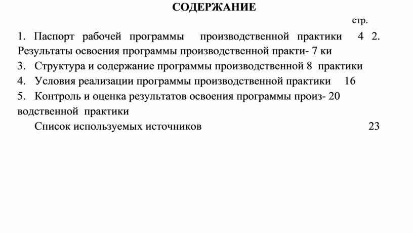 1. Паспорт рабочей программы производственной практики 4 2. Результаты освоения программы производственной практи- 7 ки